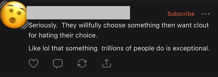 Granted, I thought Substack was a bit of a safe place - this isn’t X after all. But it is still the internet.